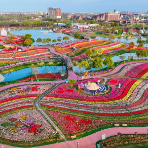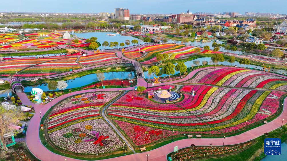 这是盐城大丰荷兰花海景区(2026年4月7日摄,无人机照片)。
