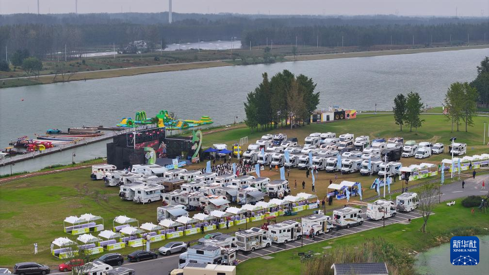 在朱海休闲运动小镇举办的长三角自驾游产业发展大会现场(2025年10月16日摄)。江苏省宿迁市王官集镇的朱海休闲运动小镇是在朱海水环境治理基础上打造的生态旅游项目,项目总占地约8900亩。朱海曾一度因养殖尾水问题而背上了沉重的“生态包袱”。2020年,朱海启动水环境综合整治项目,实施水系连通工程,曾经的“一潭死水”变为流动的活水。