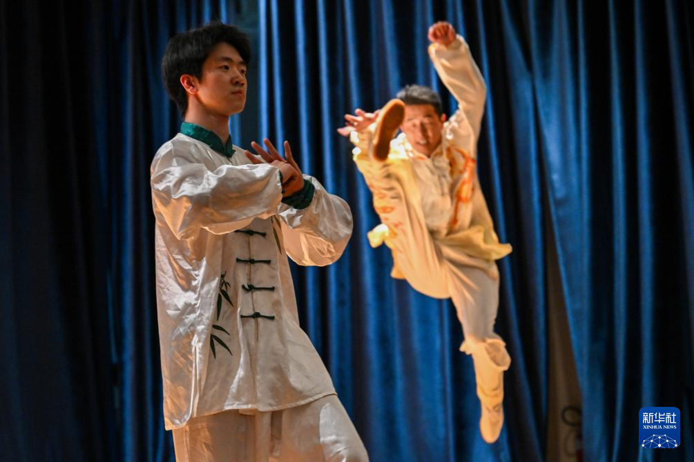 4月20日,在埃及首都开罗举办的“国际中文日”庆祝活动上,来自四川师范大学的师生表演太极拳。