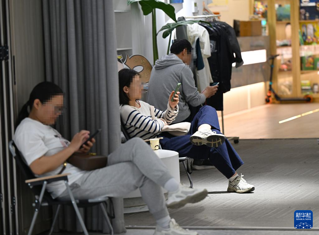 4月19日,市民在河南郑州一家书店内的座位上刷手机。