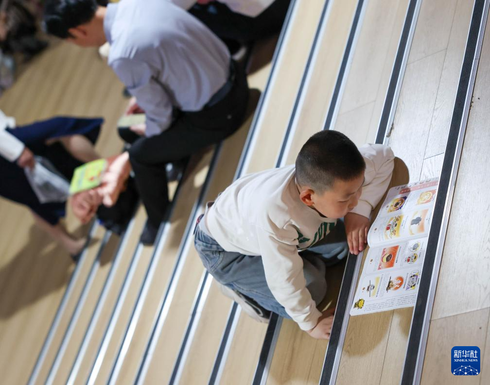 4月19日,小朋友在吉林长春一家书店阅读。