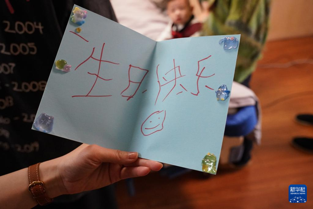 这是邓先生通过脑机接口控制外骨骼手写的生日祝福贺卡(3月28日摄)。