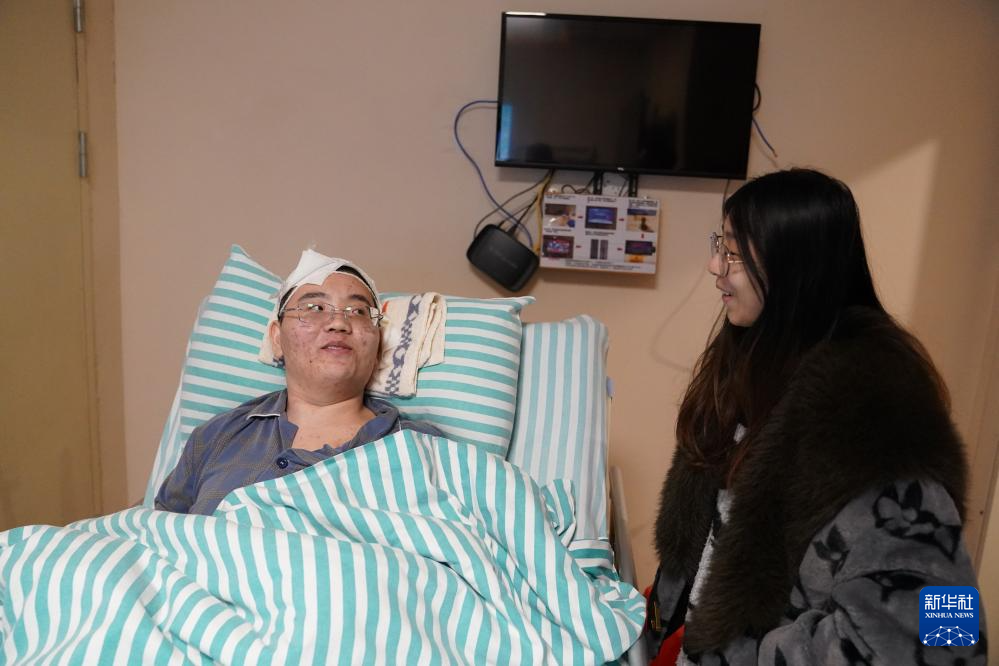 1月5日,处于术后恢复阶段的邓先生和妻子交流感受。