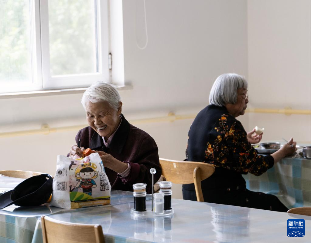 4月23日,老人在天津市滨海新区第一老年养护院就餐。