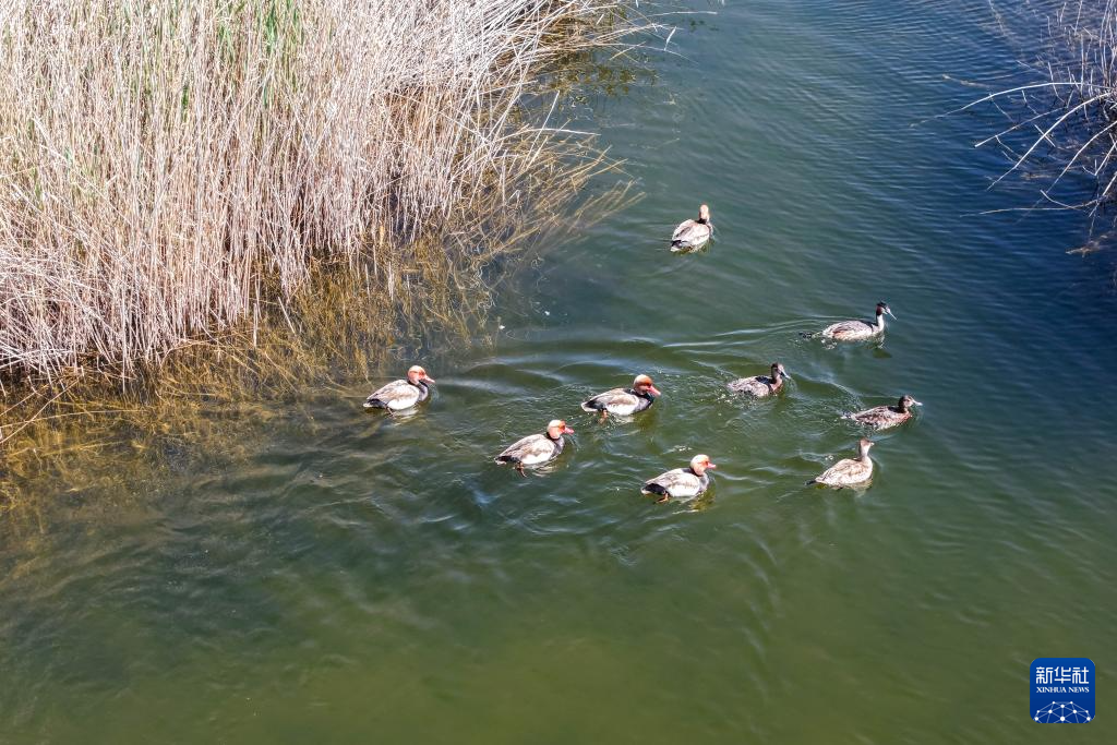 近日,随着气温回暖,栖息在甘肃省武威市民勤县青土湖的各种鸟类陆续进入繁殖期。青土湖是石羊河的尾闾湖,位于巴丹吉林沙漠与腾格里沙漠之间。