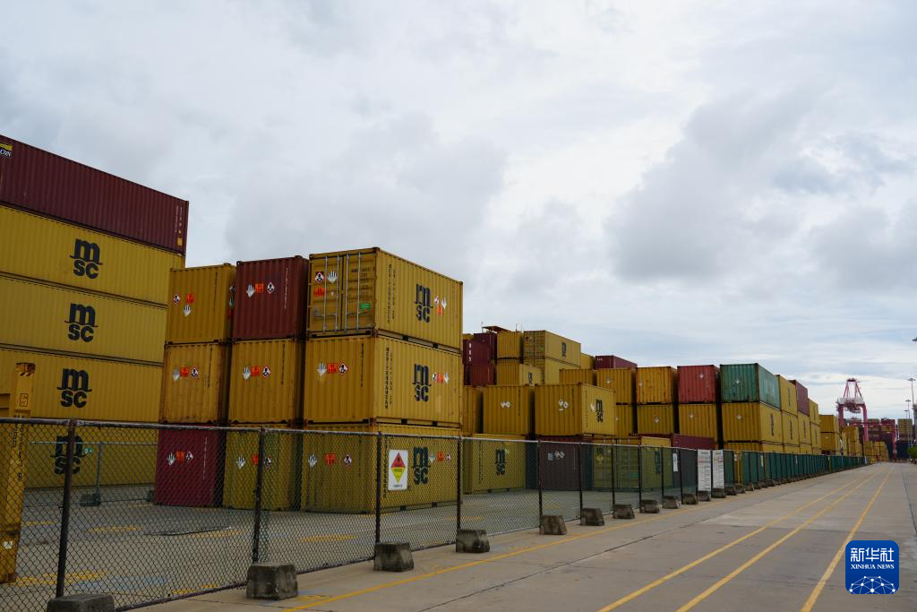 这是4月23日拍摄的斯里兰卡汉班托塔港集装箱堆场。