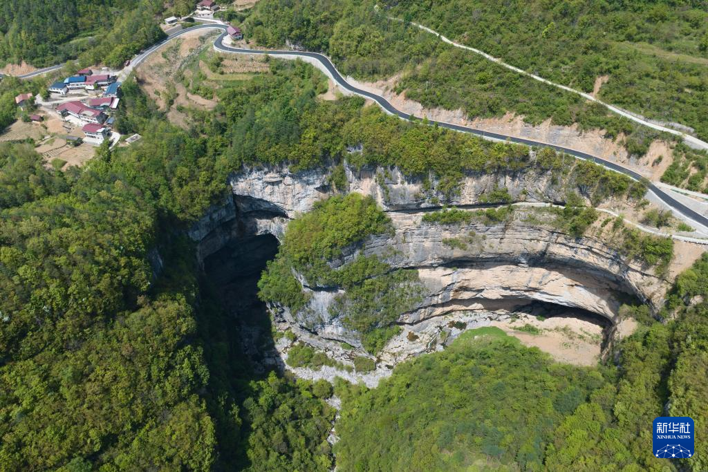 陕西省汉中市宁强县禅家岩镇地洞河天坑景色(4月24日摄,无人机照片)。