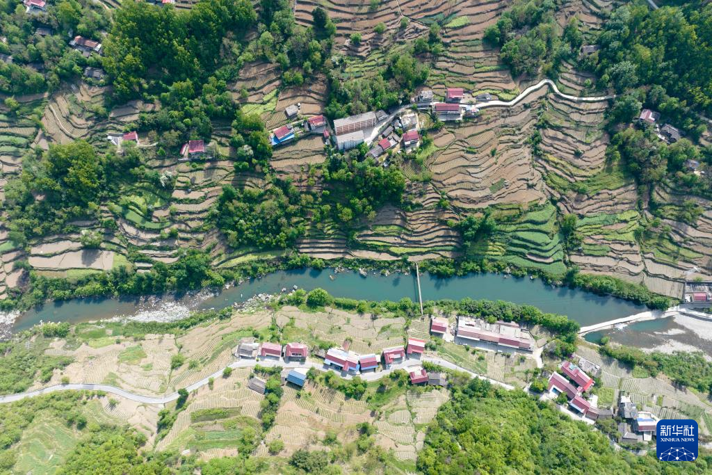 陕西省汉中市宁强县毛坝河镇大竹坝村景色(4月24日摄,无人机照片)。