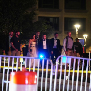 4月25日,宾客离开美国华盛顿白宫记者协会晚宴。