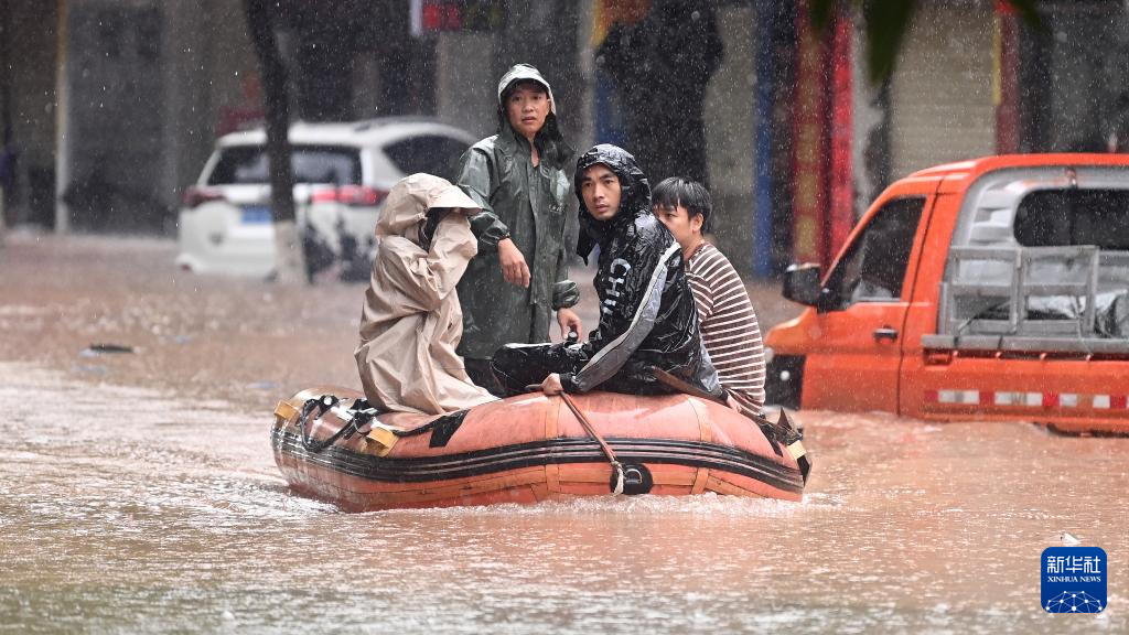 4月27日,在钦州市新兴街,工作人员前去搜救被困群众。