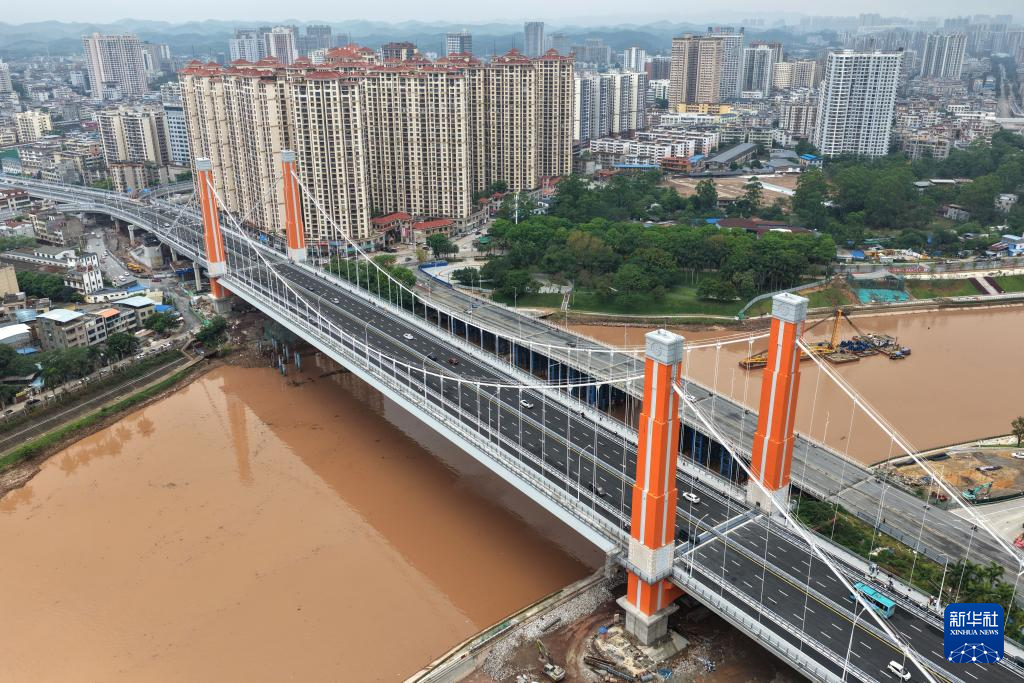这是4月28日拍摄的建成通车的平陆运河子材大桥(无人机照片)。