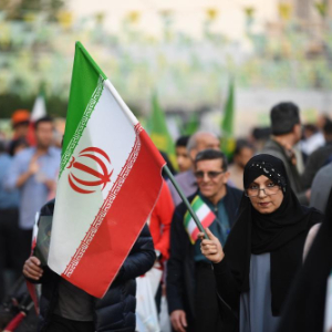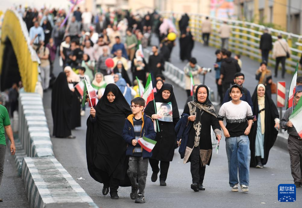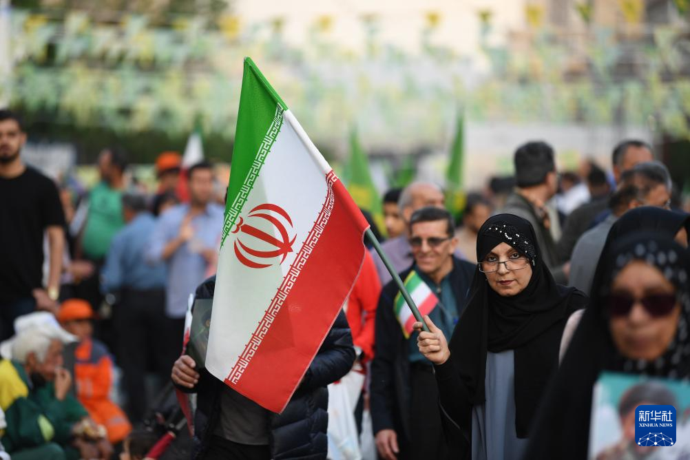 4月29日,在伊朗首都德黑兰,民众参加游行集会。