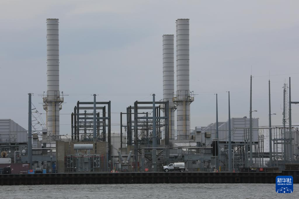 这是4月29日在美国纽约拍摄的纽约和新泽西港的变电站。