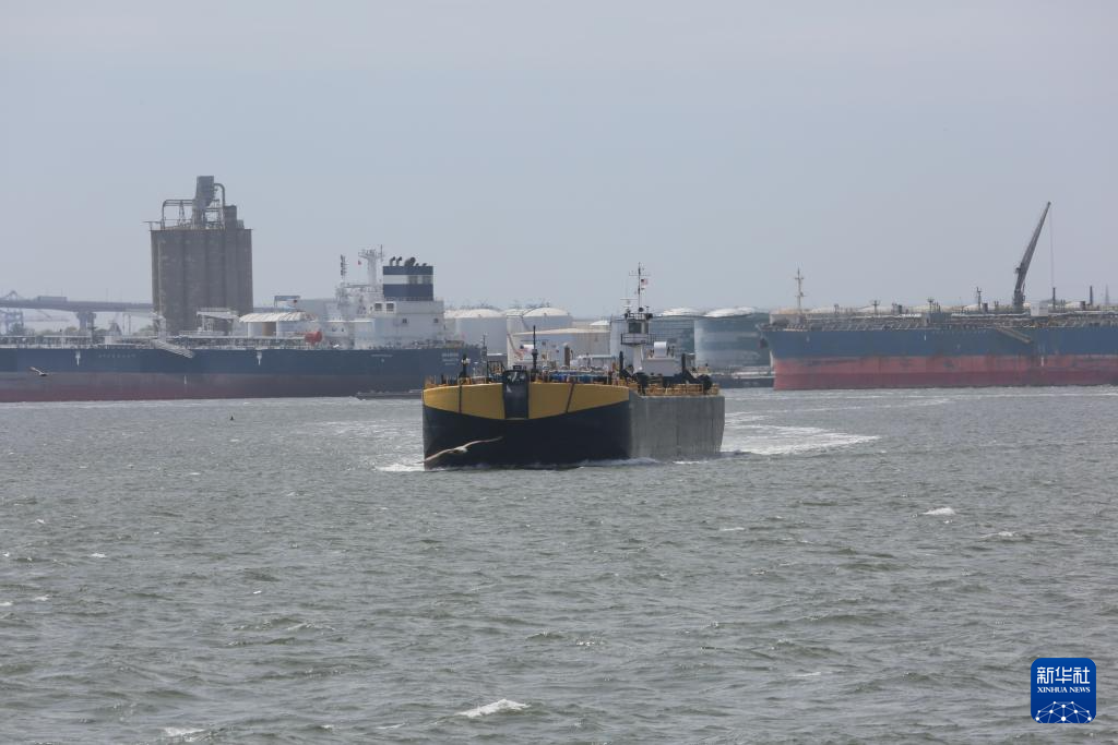 这是4月29日在美国纽约拍摄的纽约和新泽西港的油品码头。