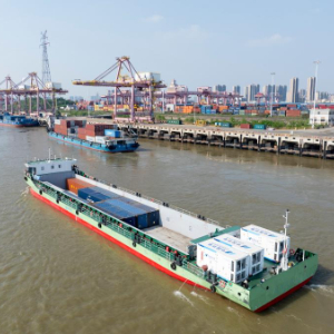 近年来,湖北港口旗下华中港航集团积极布局绿色航运新赛道,为武汉城市圈发展和湖北建设内陆开放新高地筑牢航运物流支撑。目前,由“华航新能1”轮、“华航新能2”轮、“华航新能3”轮组成的同系列纯电动集装箱船队,已实现“武汉—鄂州”城际绿色航运航线常态化高效运营。
