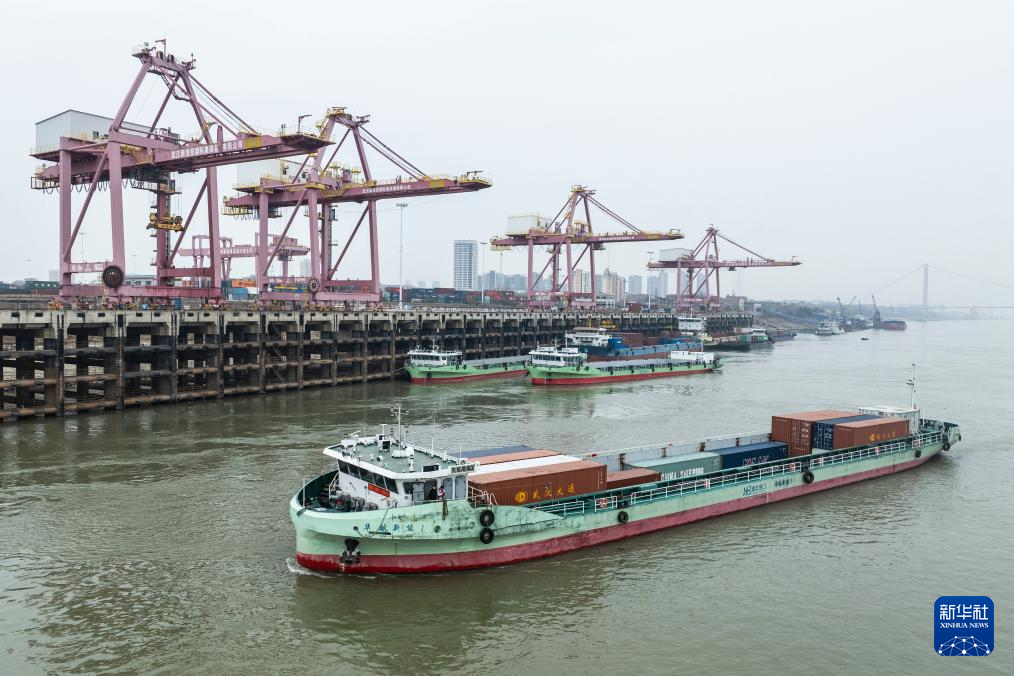 4月30日,“华航新能2”轮在武汉阳逻港停泊(无人机照片)。