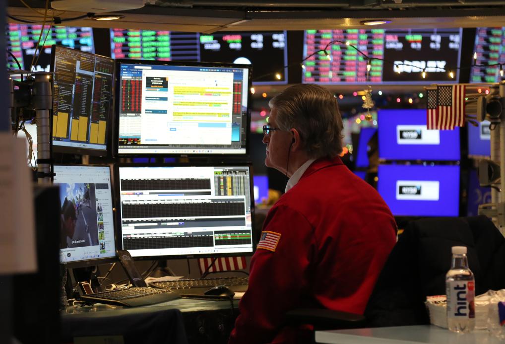 12月31日,交易员在美国纽约证券交易所交易大厅内工作。