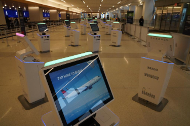 1月25日,在美国纽约拉瓜迪亚机场,值机大厅空空荡荡。