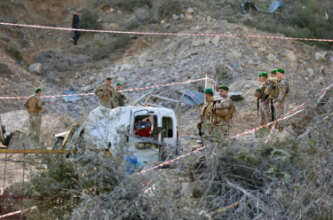 1月25日,在黎巴嫩奈拜提耶省宾特朱拜勒,士兵在空袭现场执勤。