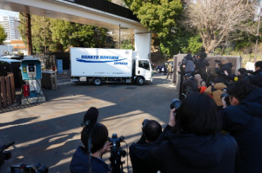 1月25日,大熊猫“晓晓”和“蕾蕾”在日本东京上野动物园迎来最后一天面向公众的开放参观。
