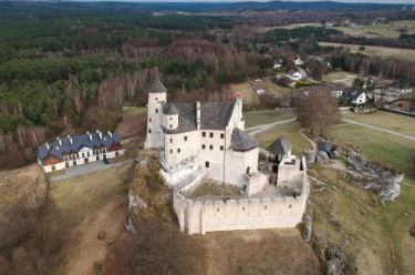 这是4月2日在波兰南部博博利采镇拍摄的博博利采城堡遗址(无人机照片)。博博利采城堡始建于14世纪,是“鹰巢之路”沿线保存较为完整的一座城堡。