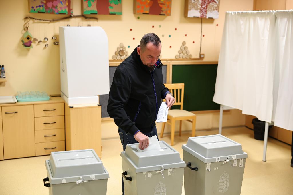 4月12日,一名选民在匈牙利布达佩斯一处投票站投票。