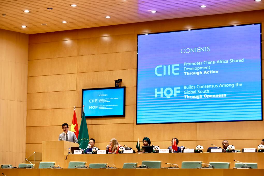第九届中国国际进口博览会(进博会)推介会暨虹桥国际经济论坛(虹桥论坛)咨商会21日在非洲联盟(非盟)总部举行。来自非盟、联合国非洲经济委员会、相关企业及商协会的80余名代表参加活动。