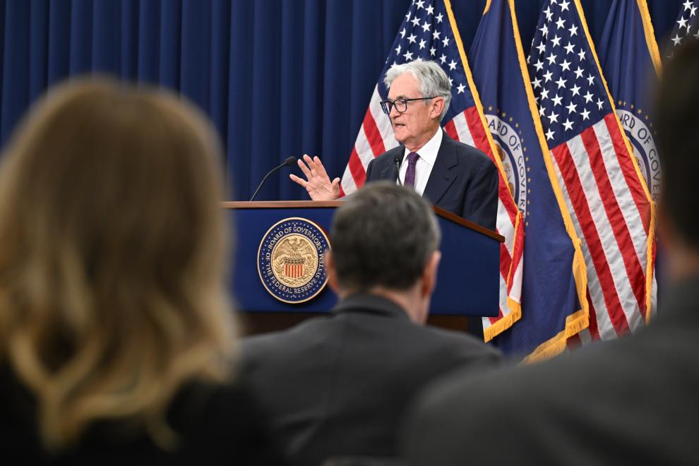 4月27日,在美国首都华盛顿白宫,白宫新闻秘书莱维特出席记者会。