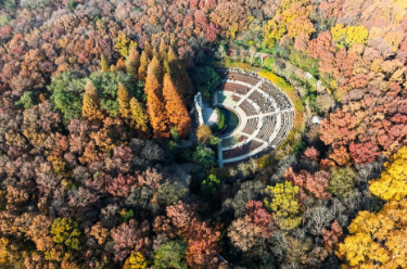 初冬时节,云南丽江玉龙雪山与山下层林互相辉映,美不胜收。
