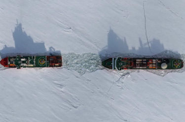 船时12月4日晚间,“雪龙”兄弟成功汇合。船时12月5日下午3时许,“雪龙2”号已将“雪龙”号引航至预定作业点,两船将在该作业点共同完成后续卸货任务。