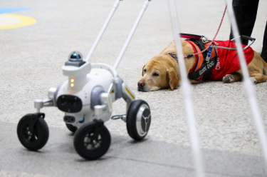 12月13日,深圳地铁首次试点启用智能导盲犬“小蒜”,以科技为视障人士地铁出行提供便利。