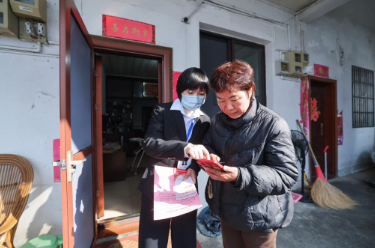 12月18日,东白湖镇事业综合服务中心的党员志愿者(左)上门“一对一”指导村民使用“浙里办”数字化平台办理业务。