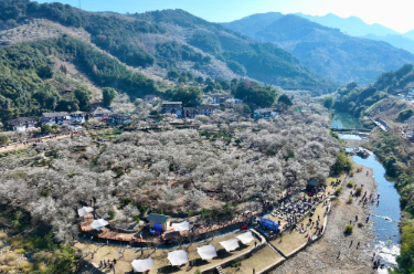 时值青梅绽放时节,1月10日,福建省福州市永泰县一年一度的梅花季系列活动在葛岭镇溪洋村文埕湾拉开帷幕,吸引众多游客前来打卡游玩。