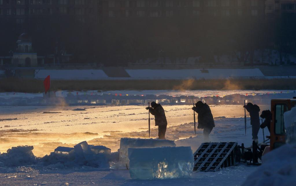 寒冬时节,第二十七届哈尔滨冰雪大世界正值迎客旺季。在距园区不远处的松花江哈尔滨段江面上,存冰开采工作已全面开启。哈尔滨冰雪大世界每年都会在采冰季挑选出一批冰块储存,采用传统储冰与现代多层保温技术相结合的方式,让冰块储存近一年时间不融化,供下一届冰雪大世界建设时使用。