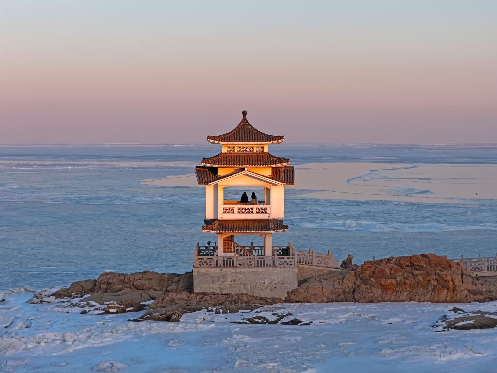 近日,受持续低温影响,辽宁省葫芦岛市附近海域出现海冰,形成独特景观。