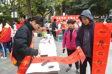 1月24日,由福州市委教育工委、市教育局、共青团福州市委共同主办的2026年福州市教育系统“志愿闽都 幸福过年”主题志愿服务活动在西湖公园、五一广场等处举行。