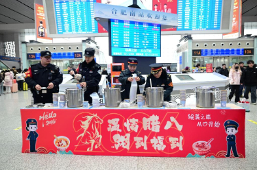 1月24日,一场以“春联送福至 粥暖工友心”为主题的迎新春关爱产业工人活动在浙江金华铁路枢纽扩容改造工程3标项目部一工区产业工人社区举行。