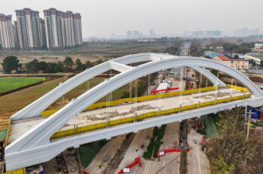 1月26日,由中铁二局承建的成渝中线高铁龙泉特大桥6000吨系杆拱平稳落位于桥墩之上,标志着全长14公里的成渝中线高铁最长桥梁打通关键障碍,为全线按期通车奠定坚实基础。