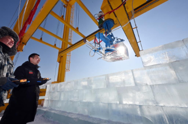 2月3日,一款智能大型冰雕自动化搭建机器人在第二十七届哈尔滨冰雪大世界的科技赋能冰雪实验区进入测试阶段。