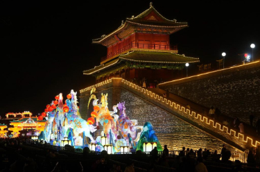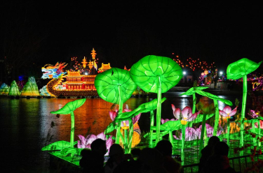 2月10日,甘肃省兰州市在兰州黄河铁桥中山桥、东方红广场等城市地标及城区主干道布置的灯饰灯组正式接电亮灯,营造出喜庆祥和的新春佳节氛围。
