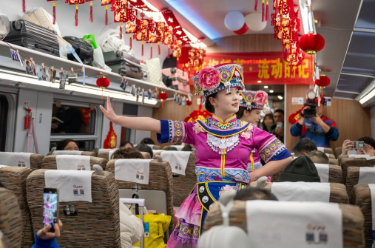 2月10日,中国铁路武汉局集团有限公司武汉客运段D38次乘务组在列车上举办了以“红旗新春·流动的记忆”为主题的新年联欢会。活动通过舞蹈、萨克斯演奏等形式,为旅客们送上新春祝福。