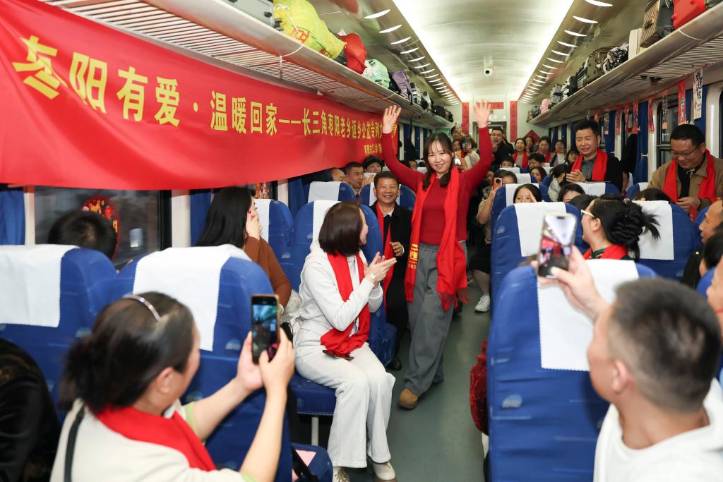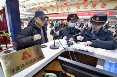 2月11日,80名在上海务工的湖北枣阳籍人员从上海站出发,乘坐K1127次列车返回湖北枣阳。