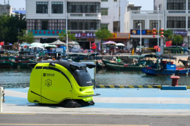 小蜜蜂智慧清洁机器人在海南省琼海市潭门镇排港村作业。