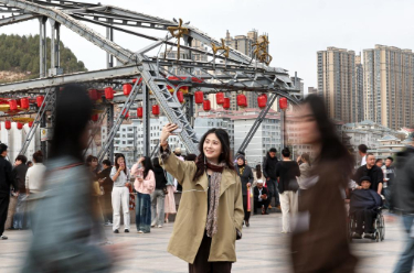 春日,重庆市荣昌区玉带河公园内绿意盎然、碧波相伴,众多市民与游客前来休闲观光,或漫步亲水步道,或驻足赏景拍照,呈现出一派和谐生动的春日景象。