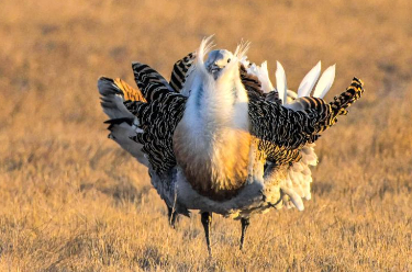 近日,国家一级保护动物大鸨现身黑龙江省林甸县的草原。