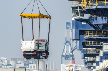 近日,货车、油罐车、混凝土搅拌车等车辆在山东港口烟台港陆续装船,准备出口非洲。