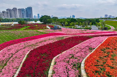 这是4月11日拍摄的福建漳州龙江岁月景区花海。