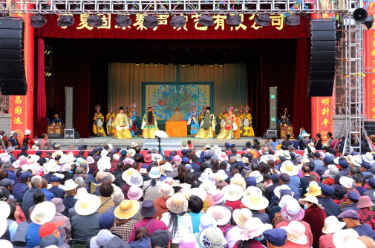 4月12日,在静宁县八里镇高城寨村,群众在观看秦腔演出。