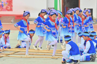 4月15日,广西梧州市长洲区龙平小学举行“石榴花开一家亲 同心喜迎‘三月三’”主题活动,师生们通过唱山歌、跳竹竿舞等丰富多彩的活动,喜迎传统节日“三月三”。