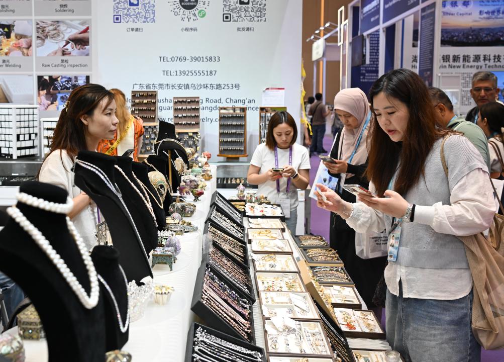 4月22日,在北京市海淀区中关村大街一座大厦内的便利店,机器人为顾客抓取烤肠。